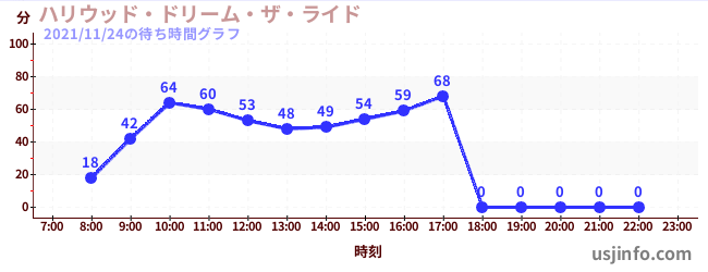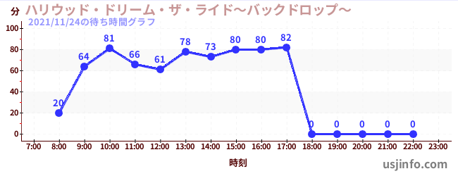 • ハリウッド・ドリーム・ザ・ライド〜バックドロップ〜$B$N(B2021年11月24日の待ち時間