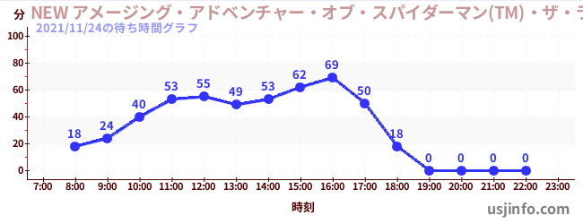 • NEW アメージング・アドベンチャー・オブ・スパイダーマン(TM)・ザ・ライド 4K3D$B$N(B2021年11月24日の待ち時間