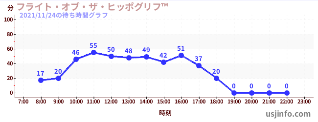 • フライト・オブ・ザ・ヒッポグリフ™$B$N(B2021年11月24日の待ち時間