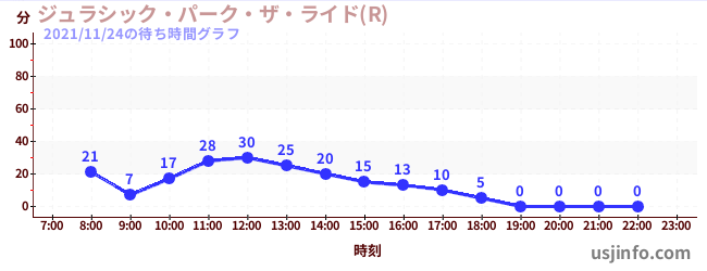 • ジュラシック・パーク・ザ・ライド(R)$B$N(B2021年11月24日の待ち時間