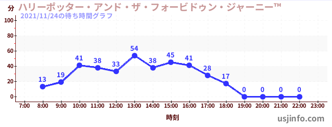 • ハリーポッター・アンド・ザ・フォービドゥン・ジャーニー™$B$N(B2021年11月24日の待ち時間