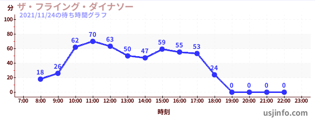 • ザ・フライング・ダイナソー$B$N(B2021年11月24日の待ち時間