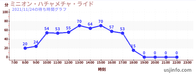 • ミニオン・ハチャメチャ・ライド$B$N(B2021年11月24日の待ち時間