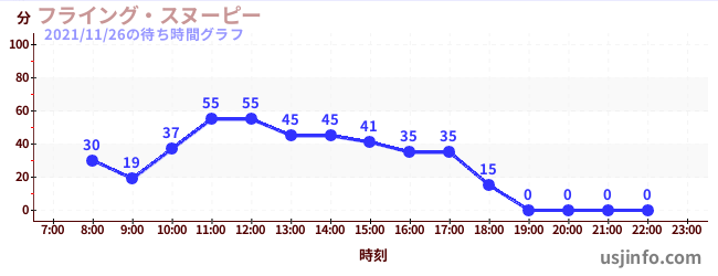 • フライング・スヌーピー$B$N(B2021年11月26日の待ち時間