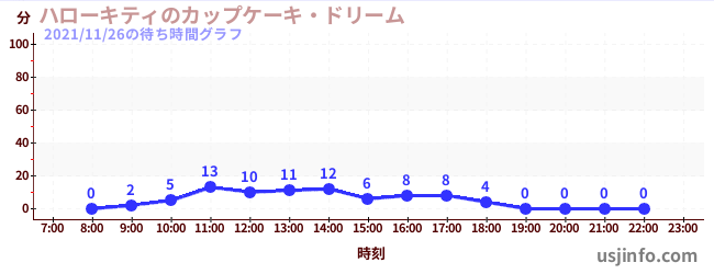 • ハローキティのカップケーキ・ドリーム$B$N(B2021年11月26日の待ち時間