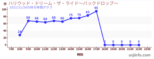 • ハリウッド・ドリーム・ザ・ライド〜バックドロップ〜$B$N(B2021年11月26日の待ち時間