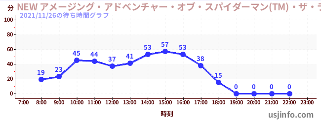 • NEW アメージング・アドベンチャー・オブ・スパイダーマン(TM)・ザ・ライド 4K3D$B$N(B2021年11月26日の待ち時間