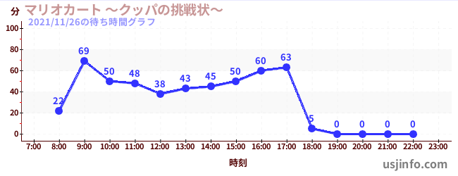 • マリオカート ~クッパの挑戦状~$B$N(B2021年11月26日の待ち時間