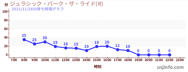 • ジュラシック・パーク・ザ・ライド(R)$B$N(B2021年11月26日の待ち時間