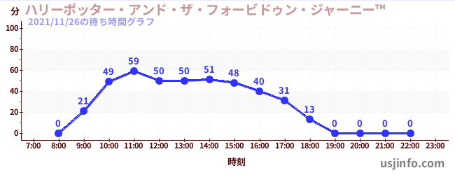 • ハリーポッター・アンド・ザ・フォービドゥン・ジャーニー™$B$N(B2021年11月26日の待ち時間