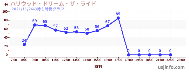 • ハリウッド・ドリーム・ザ・ライド$B$N(B2021年11月26日の待ち時間