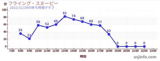 • フライング・スヌーピー$B$N(B2021年11月29日の待ち時間