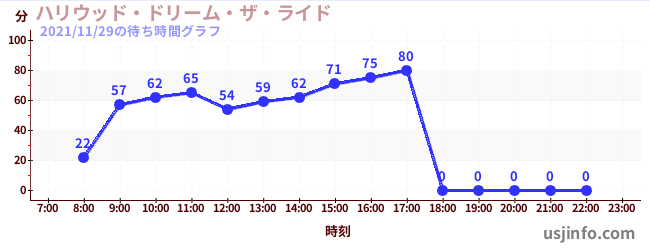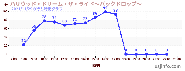 • ハリウッド・ドリーム・ザ・ライド〜バックドロップ〜$B$N(B2021年11月29日の待ち時間
