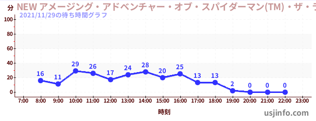 • NEW アメージング・アドベンチャー・オブ・スパイダーマン(TM)・ザ・ライド 4K3D$B$N(B2021年11月29日の待ち時間