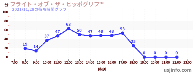 • フライト・オブ・ザ・ヒッポグリフ™$B$N(B2021年11月29日の待ち時間