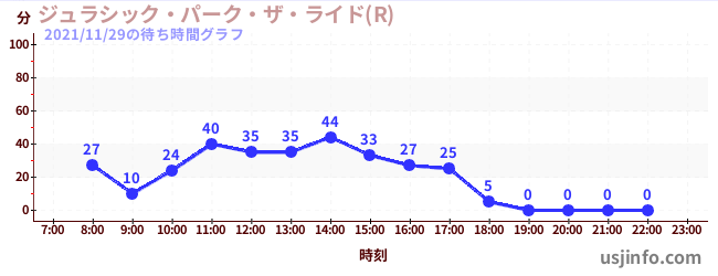 • ジュラシック・パーク・ザ・ライド(R)$B$N(B2021年11月29日の待ち時間