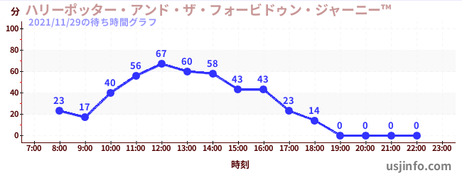 • ハリーポッター・アンド・ザ・フォービドゥン・ジャーニー™$B$N(B2021年11月29日の待ち時間