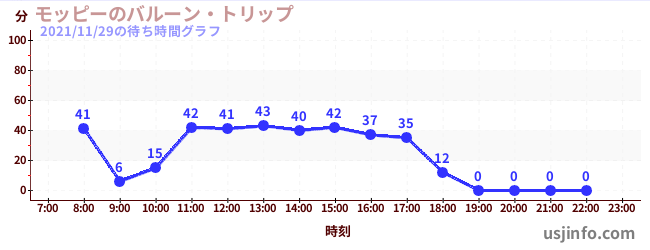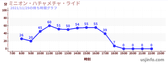 • ミニオン・ハチャメチャ・ライド$B$N(B2021年11月29日の待ち時間