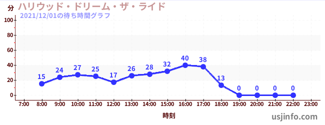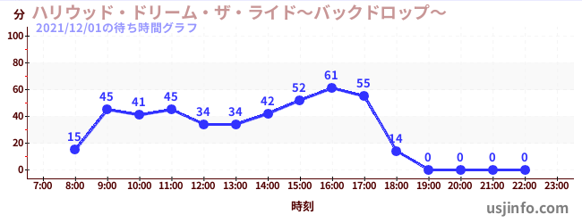 • ハリウッド・ドリーム・ザ・ライド〜バックドロップ〜$B$N(B2021年12月01日の待ち時間