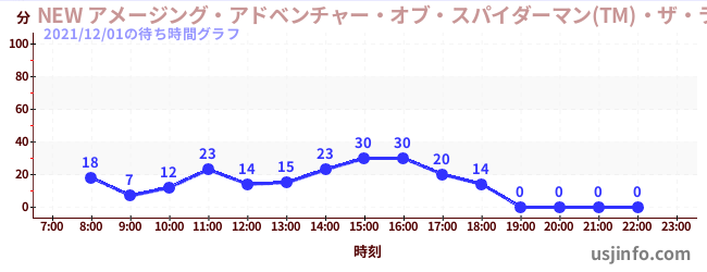 • NEW アメージング・アドベンチャー・オブ・スパイダーマン(TM)・ザ・ライド 4K3D$B$N(B2021年12月01日の待ち時間
