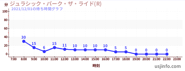 • ジュラシック・パーク・ザ・ライド(R)$B$N(B2021年12月01日の待ち時間