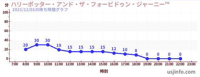 • ハリーポッター・アンド・ザ・フォービドゥン・ジャーニー™$B$N(B2021年12月01日の待ち時間