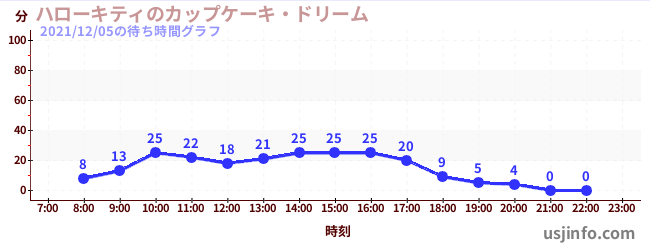 • ハローキティのカップケーキ・ドリーム$B$N(B2021年12月05日の待ち時間