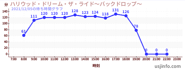 • ハリウッド・ドリーム・ザ・ライド〜バックドロップ〜$B$N(B2021年12月05日の待ち時間