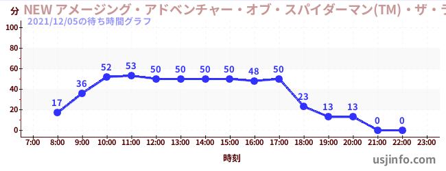 • NEW アメージング・アドベンチャー・オブ・スパイダーマン(TM)・ザ・ライド 4K3D$B$N(B2021年12月05日の待ち時間