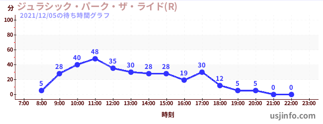 • ジュラシック・パーク・ザ・ライド(R)$B$N(B2021年12月05日の待ち時間