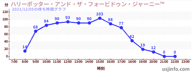• ハリーポッター・アンド・ザ・フォービドゥン・ジャーニー™$B$N(B2021年12月05日の待ち時間