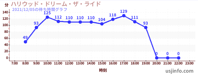 • ハリウッド・ドリーム・ザ・ライド$B$N(B2021年12月05日の待ち時間