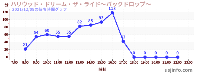 • ハリウッド・ドリーム・ザ・ライド〜バックドロップ〜$B$N(B2021年12月09日の待ち時間