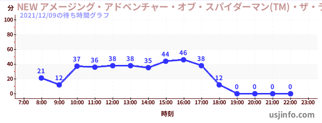 • NEW アメージング・アドベンチャー・オブ・スパイダーマン(TM)・ザ・ライド 4K3D$B$N(B2021年12月09日の待ち時間