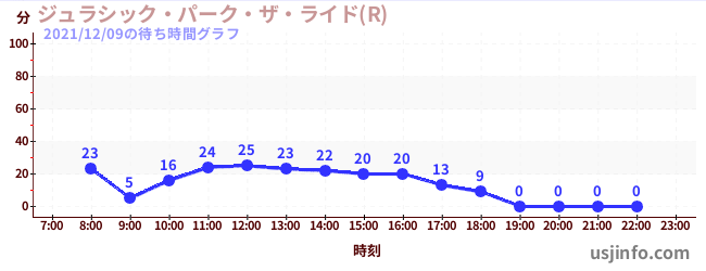 • ジュラシック・パーク・ザ・ライド(R)$B$N(B2021年12月09日の待ち時間