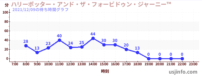 • ハリーポッター・アンド・ザ・フォービドゥン・ジャーニー™$B$N(B2021年12月09日の待ち時間