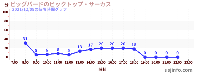 • ビッグバードのビックトップ・サーカス$B$N(B2021年12月09日の待ち時間