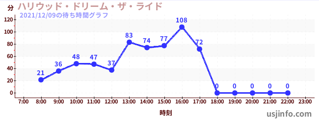 • ハリウッド・ドリーム・ザ・ライド$B$N(B2021年12月09日の待ち時間