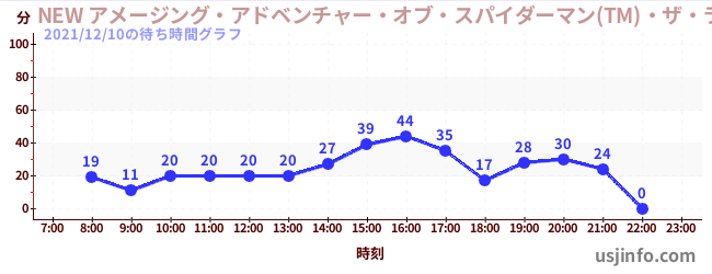 • NEW アメージング・アドベンチャー・オブ・スパイダーマン(TM)・ザ・ライド 4K3D$B$N(B2021年12月10日の待ち時間