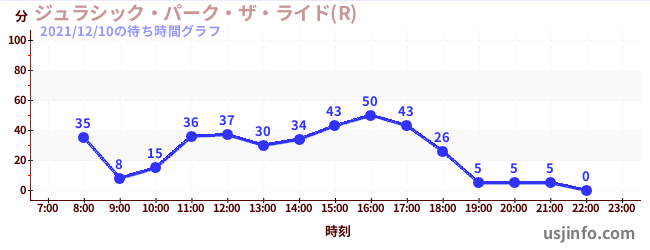 • ジュラシック・パーク・ザ・ライド(R)$B$N(B2021年12月10日の待ち時間