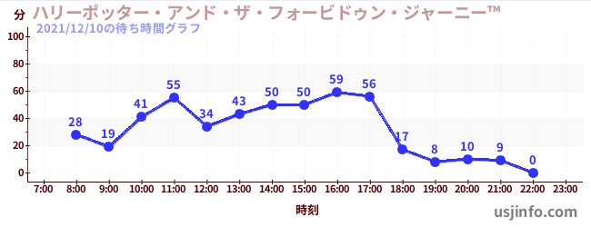 • ハリーポッター・アンド・ザ・フォービドゥン・ジャーニー™$B$N(B2021年12月10日の待ち時間