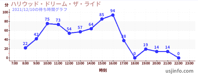 • ハリウッド・ドリーム・ザ・ライド$B$N(B2021年12月10日の待ち時間