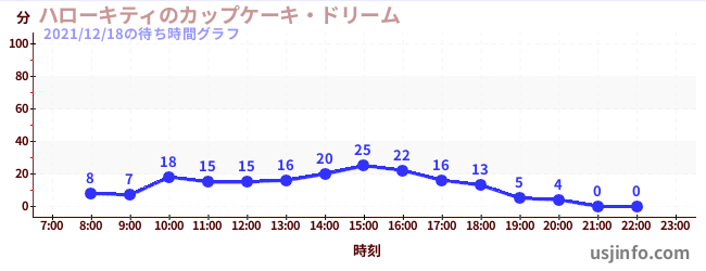 • ハローキティのカップケーキ・ドリーム$B$N(B2021年12月18日の待ち時間
