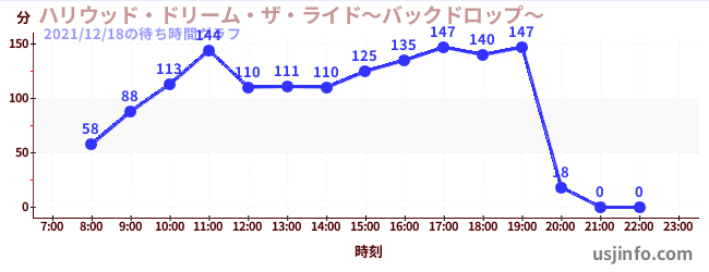 • ハリウッド・ドリーム・ザ・ライド〜バックドロップ〜$B$N(B2021年12月18日の待ち時間