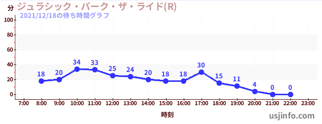 • ジュラシック・パーク・ザ・ライド(R)$B$N(B2021年12月18日の待ち時間