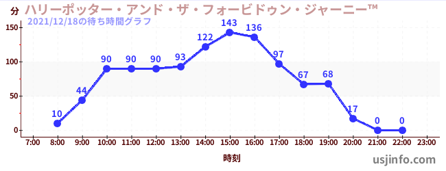 • ハリーポッター・アンド・ザ・フォービドゥン・ジャーニー™$B$N(B2021年12月18日の待ち時間