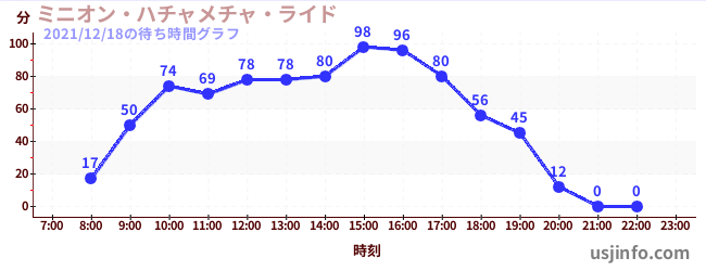 • ミニオン・ハチャメチャ・ライド$B$N(B2021年12月18日の待ち時間