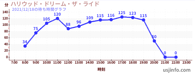 • ハリウッド・ドリーム・ザ・ライド$B$N(B2021年12月18日の待ち時間