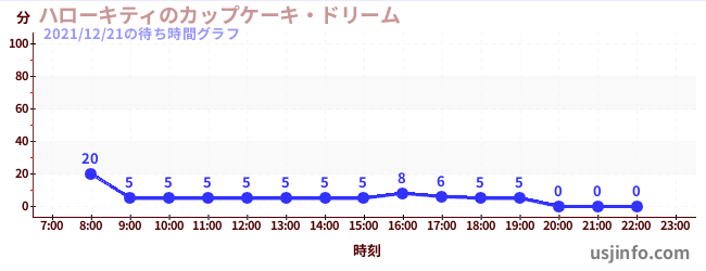• ハローキティのカップケーキ・ドリーム$B$N(B2021年12月21日の待ち時間
