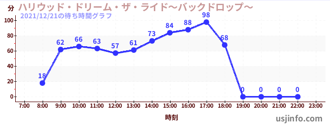• ハリウッド・ドリーム・ザ・ライド〜バックドロップ〜$B$N(B2021年12月21日の待ち時間